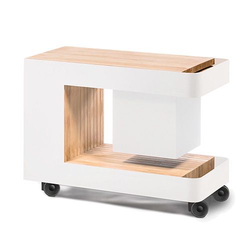 Dessertes & Chariots en bois Exotique et Acacia sur roues avec freins, équipés de rangements et de plateau en inox